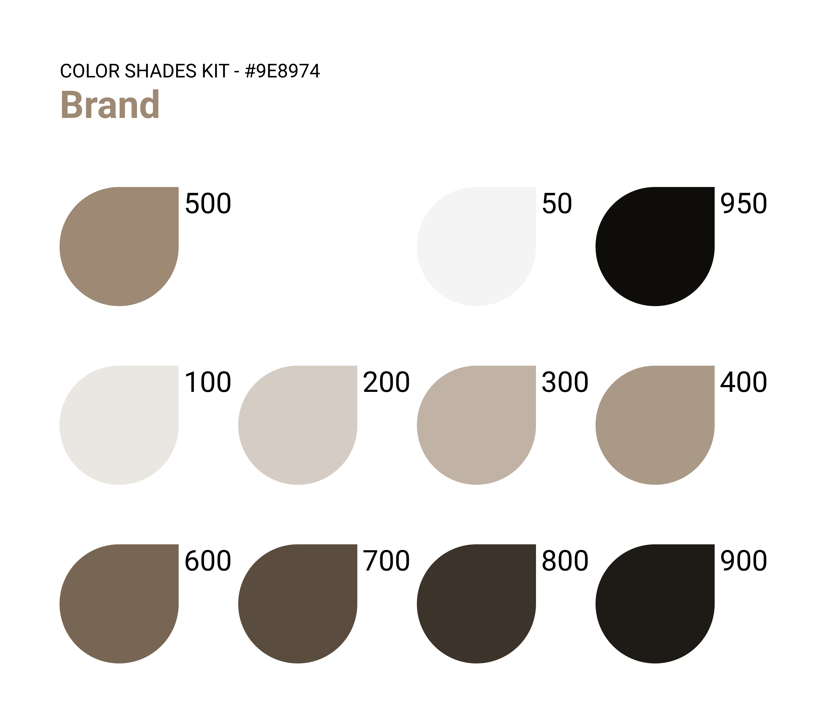 The primary palette centers around a warm, muted brown tone (#9E8974) with a full range of complementary shades from soft beige to deep espresso. These colors mirror the texture of aged paper, wooden shelves, and natural light, creating a soothing environment that encourages focus.