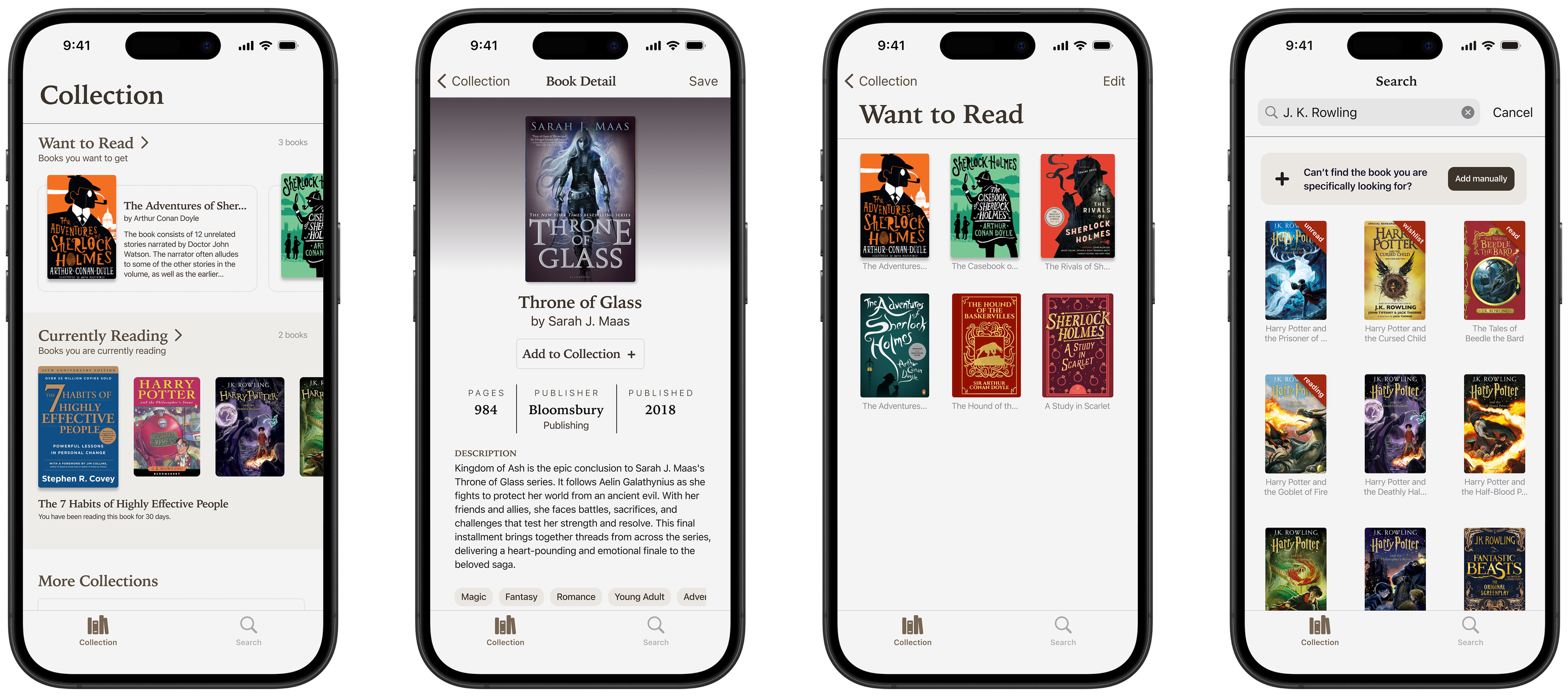 Book tracking apps often feel cluttered, overly complex, or lack personalization. I wanted to create a minimalist, elegant interface that keeps users focused on what matters — their books — while offering intuitive features like categorizing books into collections (e.g., Want to Read, Currently Reading, Finished). The challenge was to balance simplicity and functionality while maintaining a warm, tactile design aesthetic that evokes the feeling of a personal library.